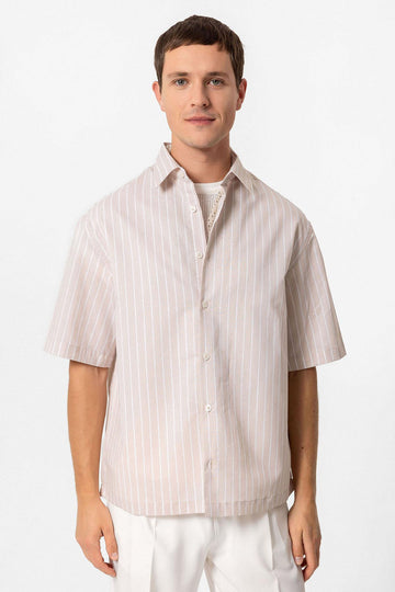 The Antioch Short Arm Shirt, dominated by beige with its unique stance, stands out with its luxurious design reflecting a distinctive silhouette. The short arm design is complemented with a button closure. The design ensures you feel extremely comfortable with its luxurious texture and fit, adapting to your daily city styles and office combinations. Depending on your preference, the design can be paired with various pants, allowing you to achieve a stylish and assertive look, taking your style one step further.
