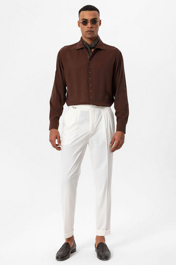 Brown dominating with its unique stance the Antioch Long arm Shirt stands out with its luxurious design reflecting a characteristic silhouette. The design of Long arm is complemented with closure. The design ensures you feel extremely comfortable with its luxurious texture and fit adapting to your daily city styles and office combinations. Depending on your preference the design can be used with various pants allowing you to achieve a stylish and assertive look taking your style one step further.