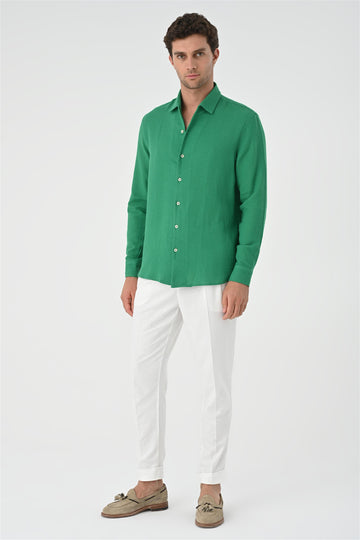 Duck Green dominating with its unique stance the Antioch Long arm Shirt stands out with its luxurious design reflecting a characteristic silhouette. The design of Long arm is complemented with Button closure. The design ensures you feel extremely comfortable with its luxurious texture and fit adapting to your daily city styles and office combinations. Depending on your preference the design can be used with various pants allowing you to achieve a stylish and assertive look taking your style one step further.