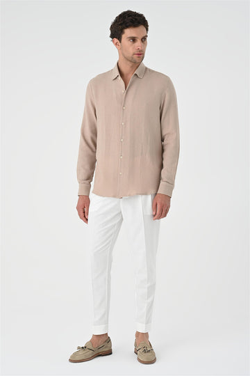 Beige dominating with its unique stance the Antioch Long arm Shirt stands out with its luxurious design reflecting a characteristic silhouette. The design of Long arm is complemented with Button closure. The design ensures you feel extremely comfortable with its luxurious texture and fit adapting to your daily city styles and office combinations. Depending on your preference the design can be used with various pants allowing you to achieve a stylish and assertive look taking your style one step further.