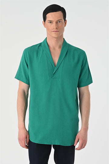 Green dominating with its unique stance the Antioch Short arm Shirt stands out with its luxurious design reflecting a characteristic silhouette. The design of Short arm is complemented with closure. The design ensures you feel extremely comfortable with its luxurious texture and fit adapting to your daily city styles and office combinations. Depending on your preference the design can be used with various pants allowing you to achieve a stylish and assertive look taking your style one step further.