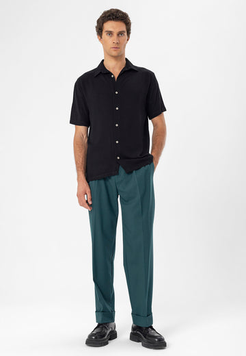 Black dominating with its unique stance the Antioch Short arm Shirt stands out with its luxurious design reflecting a characteristic silhouette. The design of Short arm is complemented with Button closure. The design ensures you feel extremely comfortable with its luxurious texture and fit adapting to your daily city styles and office combinations. Depending on your preference the design can be used with various pants allowing you to achieve a stylish and assertive look taking your style one step further.