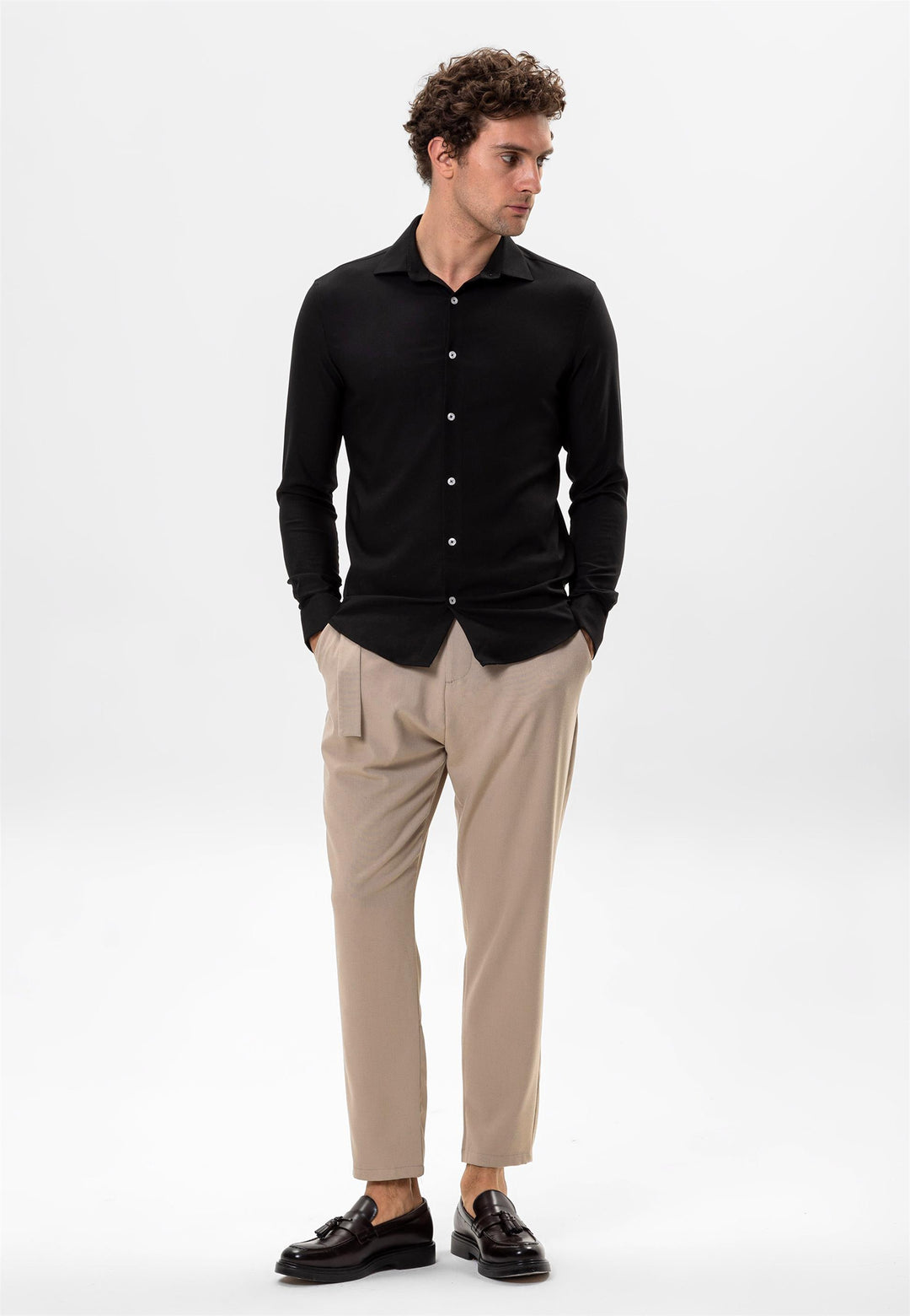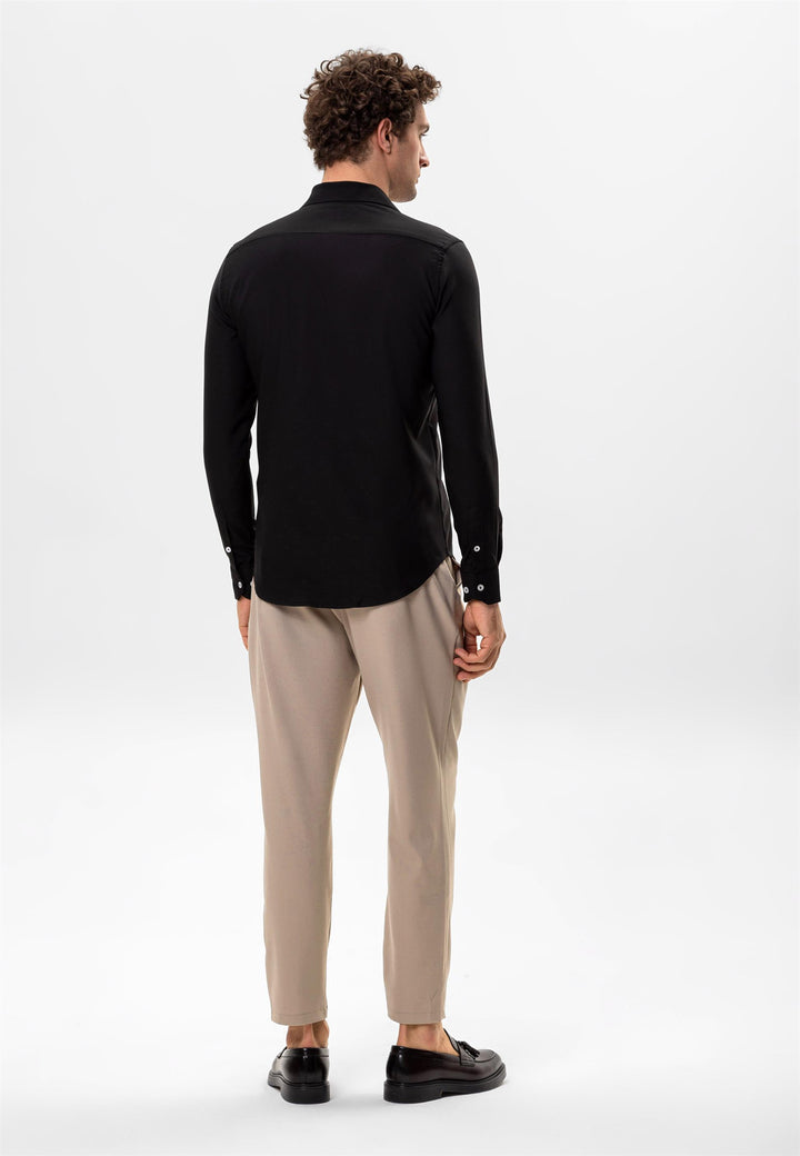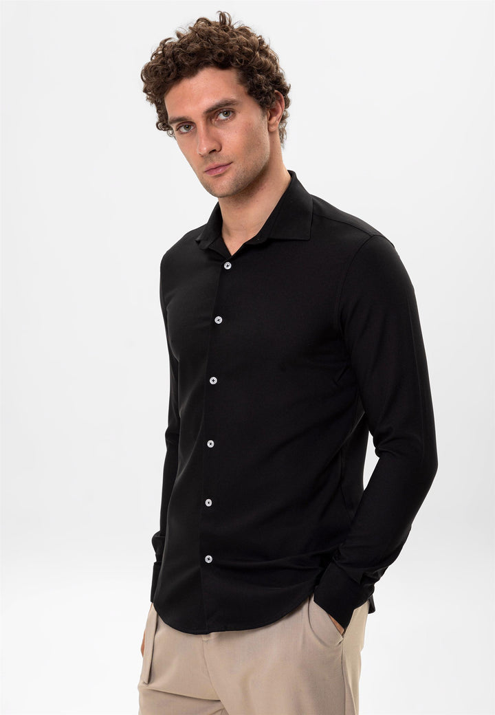 Black dominating with its unique stance the Antioch Long arm Shirt stands out with its luxurious design reflecting a characteristic silhouette. The design of Long arm is complemented with Button closure. The design ensures you feel extremely comfortable with its luxurious texture and fit adapting to your daily city styles and office combinations. Depending on your preference the design can be used with various pants allowing you to achieve a stylish and assertive look taking your style one step further.