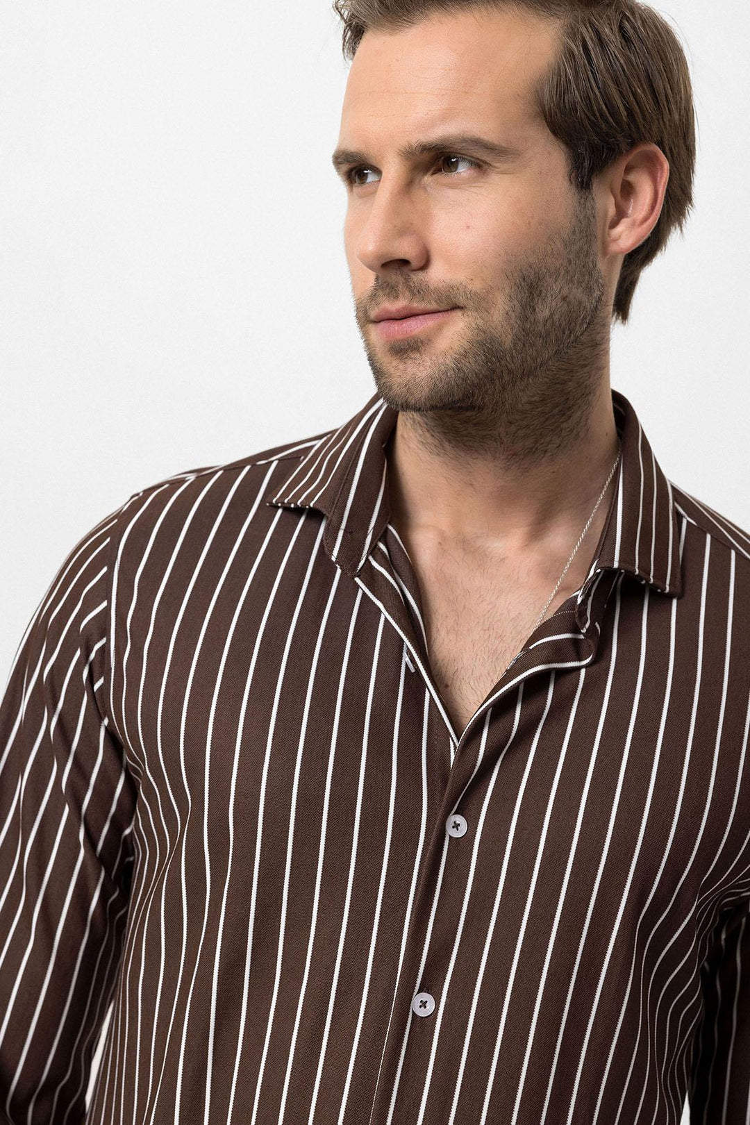 Brown dominating with its unique stance the Antioch Long arm Shirt stands out with its luxurious design reflecting a characteristic silhouette. The design of Long arm is complemented with Button closure. The design ensures you feel extremely comfortable with its luxurious texture and fit adapting to your daily city styles and office combinations. Depending on your preference the design can be used with various pants allowing you to achieve a stylish and assertive look taking your style one step further.