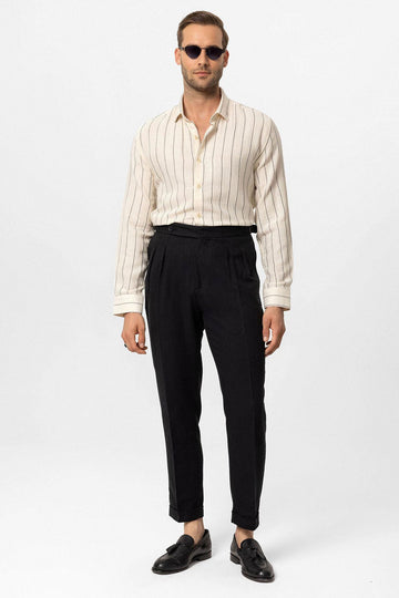 Black dominating with its unique stance the Antioch Long arm Shirt stands out with its luxurious design reflecting a characteristic silhouette. The design of Long arm is complemented with closure. The design ensures you feel extremely comfortable with its luxurious texture and fit adapting to your daily city styles and office combinations. Depending on your preference the design can be used with various pants allowing you to achieve a stylish and assertive look taking your style one step further.