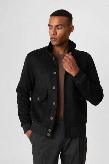 ANT Stand Collar Suede Men's Coat with Waist Elastic - Everett