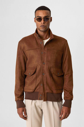 ANT Stand Collar Suede Men's Coat with Waist Elastic - Orizaba