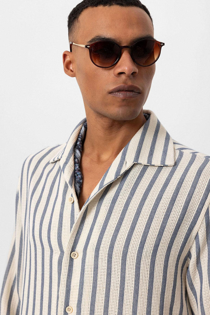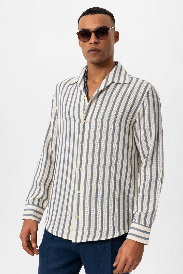 ANT Striped Knitted Long Sleeve Men's Shirt - Cherry Hill
