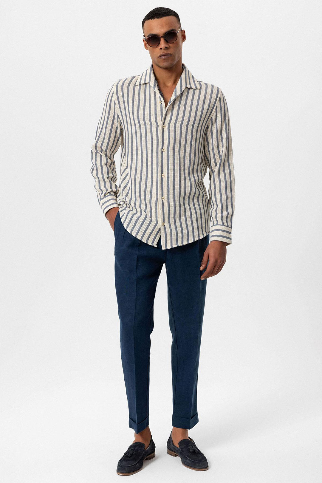 Indigo dominating with its unique stance the Antioch Long arm Shirt stands out with its luxurious design reflecting a characteristic silhouette. The design of Long arm is complemented with closure. The design ensures you feel extremely comfortable with its luxurious texture and fit adapting to your daily city styles and office combinations. Depending on your preference the design can be used with various pants allowing you to achieve a stylish and assertive look taking your style one step further.