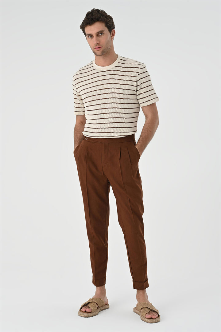 The Antioch Crew Neck T-shirt aligns well with your casual outfits due to its sporty texture. The unique structure of the Crew Neck knit offers comfort making users feel fresh and helping them reflect their style. This model crafted especially to cater to the taste of men who prefer sportswear is designed with chic design details.