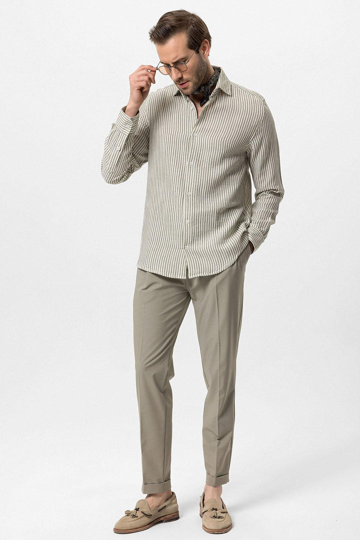 Khaki dominating with its unique stance the Antioch Long arm Shirt stands out with its luxurious design reflecting a characteristic silhouette. The design of Long arm is complemented with closure. The design ensures you feel extremely comfortable with its luxurious texture and fit adapting to your daily city styles and office combinations. Depending on your preference the design can be used with various pants allowing you to achieve a stylish and assertive look taking your style one step further.