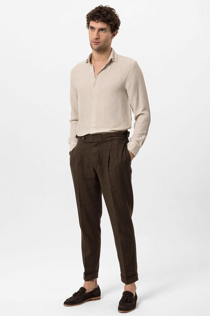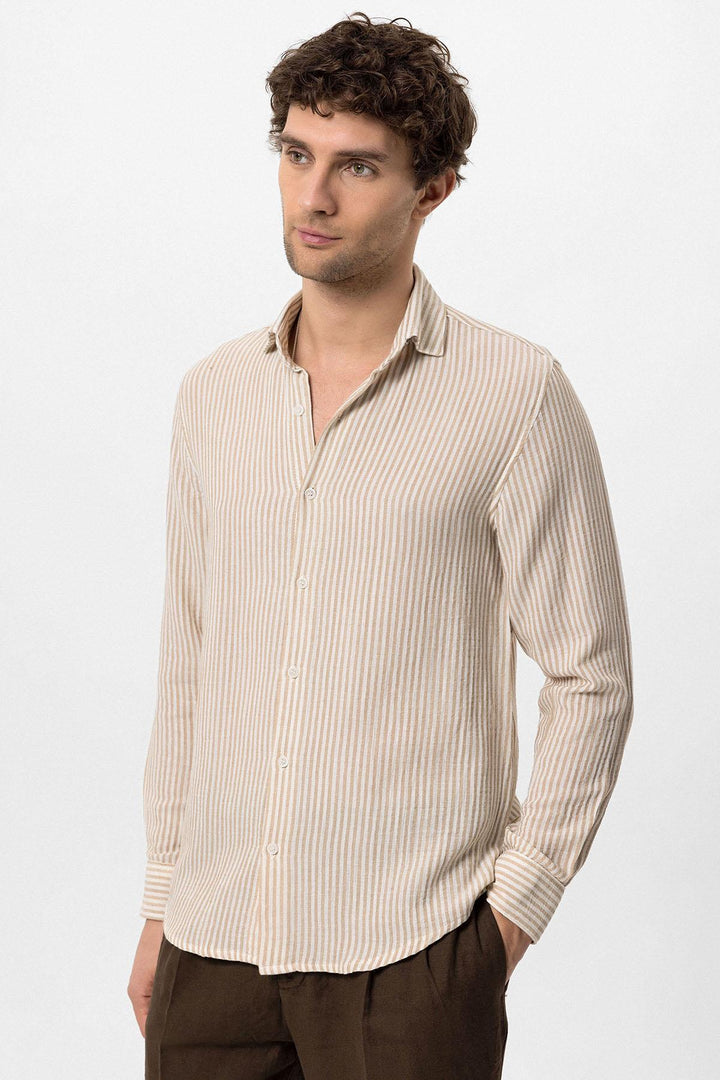 Beige dominating with its unique stance the Antioch Long arm Shirt stands out with its luxurious design reflecting a characteristic silhouette. The design of Long arm is complemented with closure. The design ensures you feel extremely comfortable with its luxurious texture and fit adapting to your daily city styles and office combinations. Depending on your preference the design can be used with various pants allowing you to achieve a stylish and assertive look taking your style one step further.