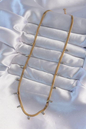 EBJ 316L Steel Gold Color Baguette Stone Italian Chain Necklace - Laatzen