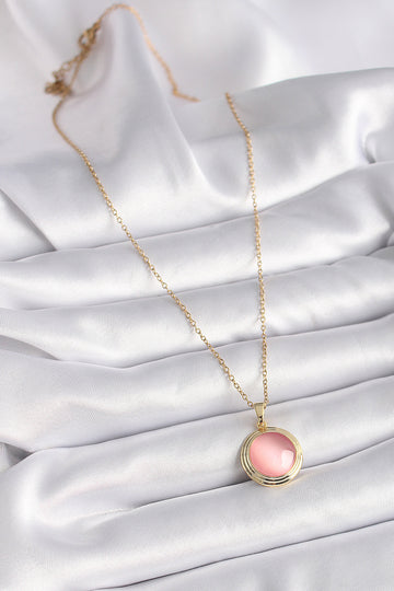 EBJ 316L Steel Gold Color Pink Mother of Pearl Round Model Women's Necklace - Wattrelos