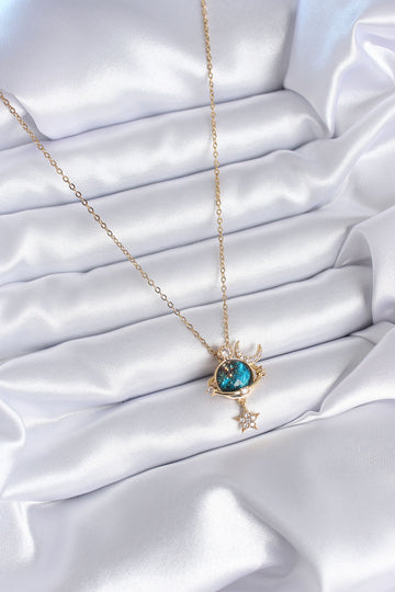 EBJ 316L Steel Gold Color Planet Model with Zircon Stone Star Model Women's Necklace - Skelmersdale