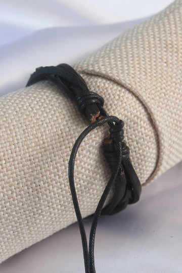 EBJ Black Knitted Pattern Leather Men's Bracelet - Bisceglie