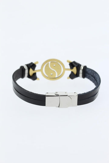 The Gold Color Yin Yang Figure Metal Accessorized Black Color Leather Men's Bracelet model will be a suitable choice for you to be stylish and classy.