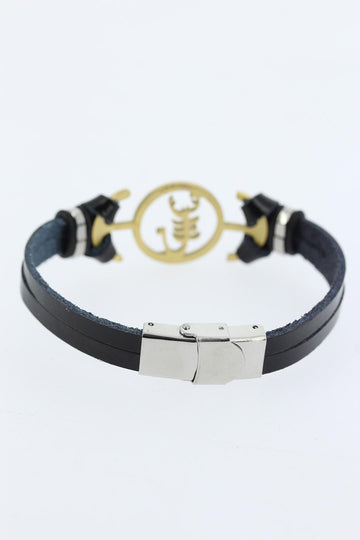 EBJ Black Leather Men's Bracelet with Steel Scorpion Figure and Gold Metal Accents - Conegliano