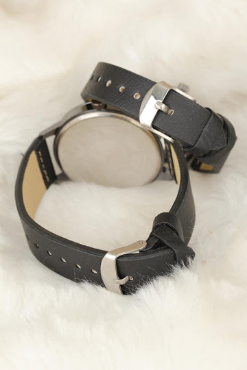 EBJ Black Leather Strap Smoke Color Metal Case Couple Watches - Regina
