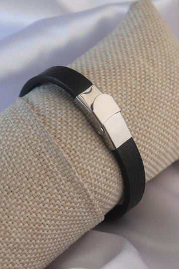 EBJ Black Metal Hammer Sickle Model Black Leather Men's Bracelet - Heerhugowaard