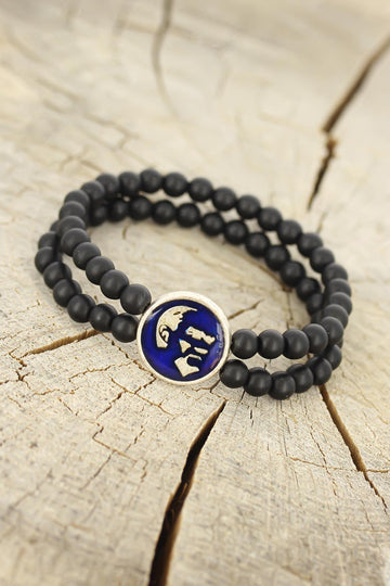 EBJ Black Onyx Natural Stone Men's Bracelet with Atatürk Portrait Figure Blue Metal Accessories - Kassel