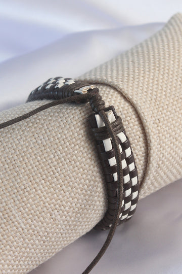 EBJ Brown White Checkered Pattern String Men's Bracelet - Perugia