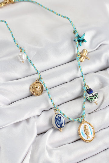 EBJ Ceramic Patterned Fish Shaped Model Blue String Women's Necklace - Magdeburg