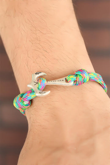 Complete your sporty elegance with the Colorful Patterned Metal Clasp Men's Bracelet.