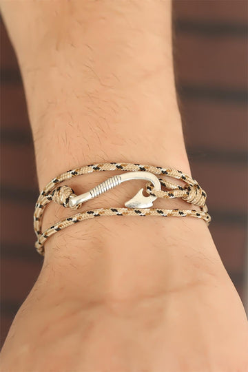 Cream Color Striped Patterned Metal Hooked Men's Bracelet will be a suitable choice for gentlemen who closely follow trends.