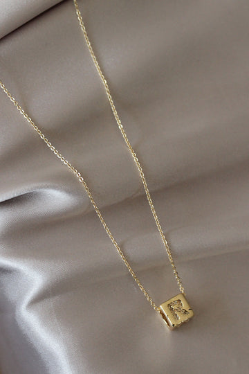 EBJ Cube Model Gold Color Zircon Stone Letter R Necklace - West Babylon