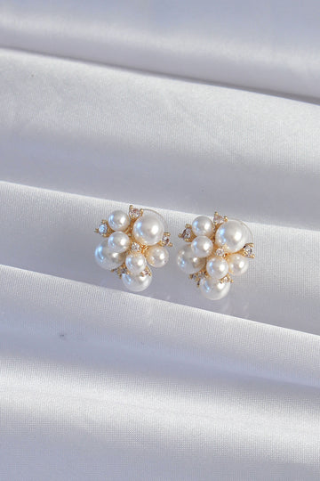 EBJ Earrings with Rice Gold Color Zircon Stone and Small Pearl Design - Campbell River
