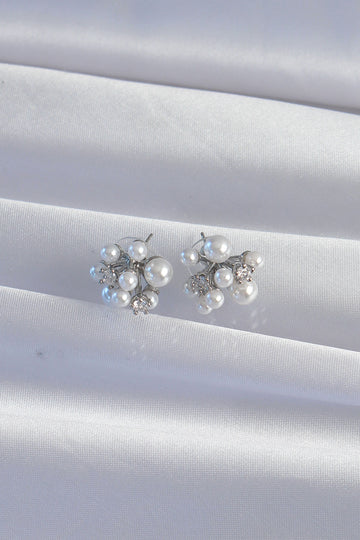 EBJ Earrings with Rice Silver Color Zircon Stone Large Small Pearl Design - Bilbao