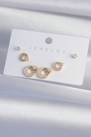 EBJ Rice Gold Color Enamel Zircon Stone Crescent Star Model Earring Set - Leominster