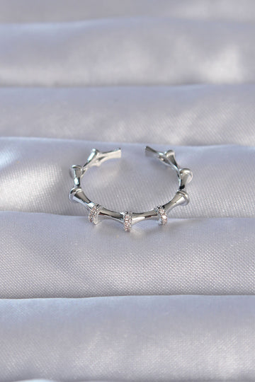 EBJ Rice Silver Color Pink Zircon Stone Bone Model Adjustable Ring - Cuenca