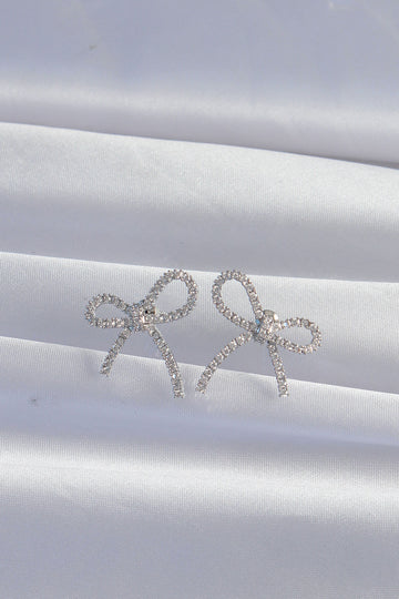 EBJ Rice Silver Color Zircon Stone Bow Earring - Pflugerville