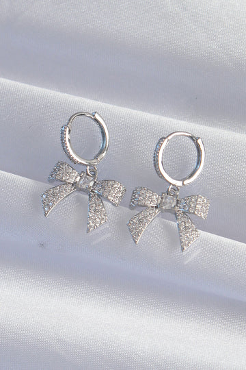 EBJ Rice Silver Color Zircon Stone Bow Model Hoop Earring - Velletri