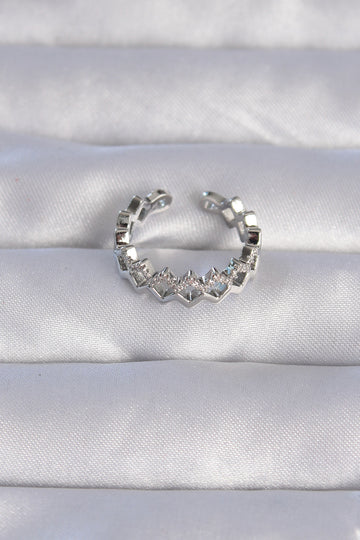 EBJ Rice Silver Color Zircon Stone Chevron Pattern Adjustable Ring - Moore
