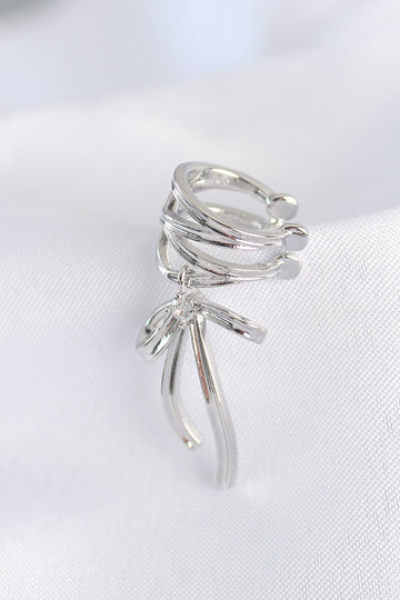 EBJ Rice Silver Color Zircon Stone Detail Bow Model Earcuff Earring - Millcreek