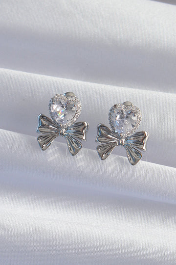 EBJ Rice Silver Color Zircon Stone Heart Model Bow Earring - Sunrise