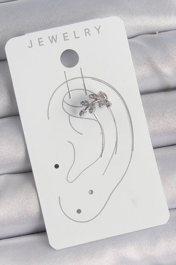 EBJ Rice Silver Color Zircon Stone Leaf Model Cartilage Women's Earring - Walnut Creek