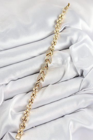 EBJ Rice Zircon Stone Fish Tail Model Gold Color Women's Bracelet - San Francisco