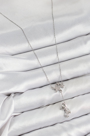 EBJ Rice Zircon Stone Pendant Star Model Silver Color Women's Necklace with Bear - Silves