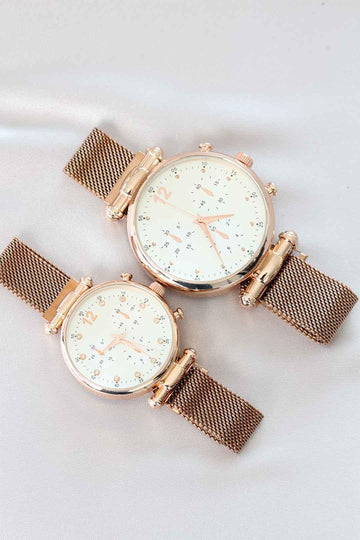 EBJ Rose Color Woven Metal Magnetic Strap Couple Watches - Centennial