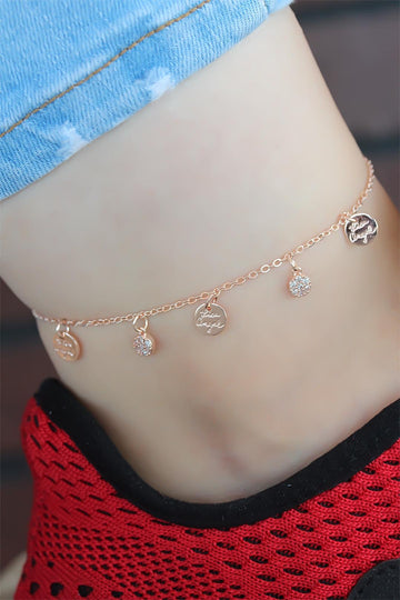 Protect your elegance with the Zircon Stone Double Chain Rose Plated Metal Accessorized Hal Hal.