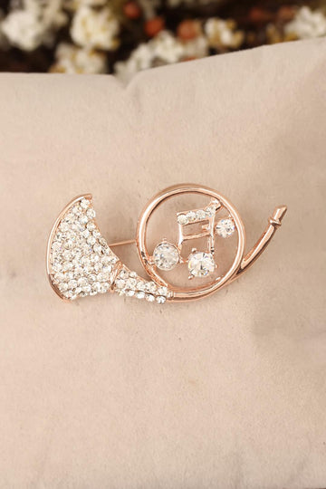 Bronze color plated metal design Saxophone Figured Brooch with Zircon Stone