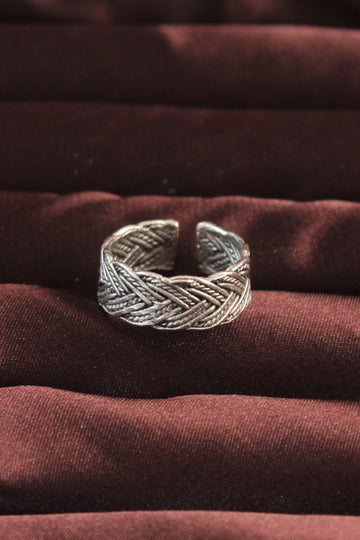 EBJ Silver Color Adjustable Knitted Pattern Men's Ring - Bowie