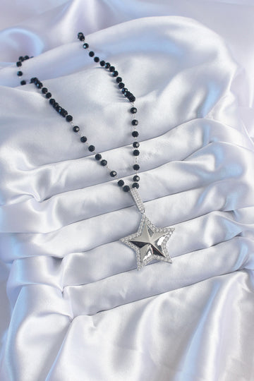 EBJ Silver Color Black Bead Zircon Stone Brass Star Model VIP Series Women's Necklace - Tottenham