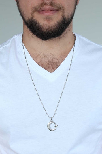 EBJ Silver Color Chrome Plated Non-Tarnish Crescent Star Design Metal Men's Necklace - Cava de’ Tirreni