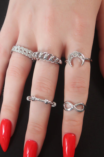 EBJ Silver Color Crescent Moon Figure Ring with Zircon Stone for Women Combination - Herne