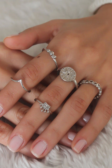 EBJ Silver Color Crown Figure Zircon Stone Detail Women's Ring Combination - Mount Vernon